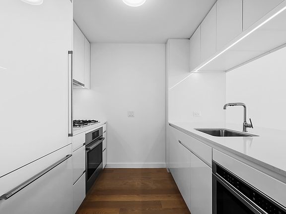 This is a full-service building with a 24-hour concierge, on-site management, and a dedicated super. Residents enjoy an unparalleled lifestyle with 65,000 square feet of resort-style amenities, including an expansive swimming pool with cabanas, multiple grilling and dining spaces, a spacious landscaped lawn, a kids' playground, and an outdoor dog run. The building also features a 3,800-square-foot fitness center, a resident lounge, a library, a demo kitchen, a game room, a screening room, a business center, a children's playroom, a golf simulator, a hot tub, and a sauna.