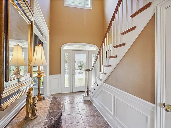 Want to feel like you are on vacation every day? Then Your Dream Waterfront Retreat Awaits...Imagine waking up to breathtaking, panoramic views of the tranquil inlet from your very own private oasis. This stunning family home, lovingly cared for by its original owners, offers a serene escape in a gated community. Sprawled across one of the largest lots, the property boasts ample space for a future pool, outdoor entertainment areas or a custom boat dock for easy access to the water. Relax on your expansive deck, sipping your morning coffee or unwinding in the evening, all while taking in the peaceful waterfront scenery. The interior features a bright and airy layout, with soaring nine-foot ceilings and abundant natural light. A gourmet kitchen, perfect for hosting gatherings, adjoins a spacious living area with a cozy fireplace. Four bedrooms, 3.5 bathrooms, and a versatile bonus room provide plenty of space for family and guests. An oversized two-car garage and custom hurricane shutters complete this idyllic waterfront retreat.