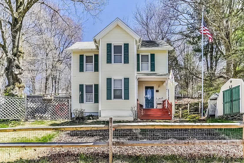 Welcome home! Approximately 1554 square feet of living space with 3 bedrooms , 2 full bathrooms, living room, dining room & eat-in kitchen. Master bedroom with walk-in closet and full bath. Ice-cold central air, energy efficient gas forced heat and thermopane windows. Theres a 12 x 20 cabin/workshop/mancave to the rear of the house boasting a loft, wardrobe, cabinets, bookshelf, built-ins and wood stove. Attic and basement for extra storage. Conveniently located, this home is secluded and set back from the road. Well-kept and maintained, this home is not to be missed!