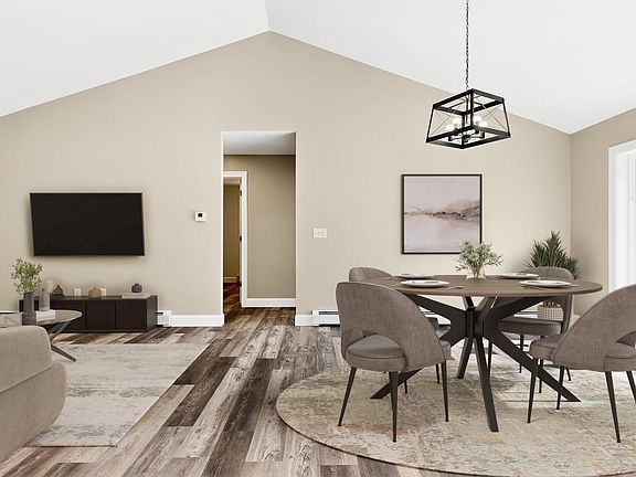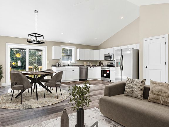 Completed NEW construction! Beautiful Open Concept Kit/LR/DR W/Cathedral ceilings. Back deck slider allows sunlight to pour through the home. Features include Granite counter tops, SS appliances, Shaker Style white kitchen cabinets, Vinyl laminate plank floors throughout, semi-enclosed front porch, primary bedroom w/bath. Full basement. Seller concessions offered.