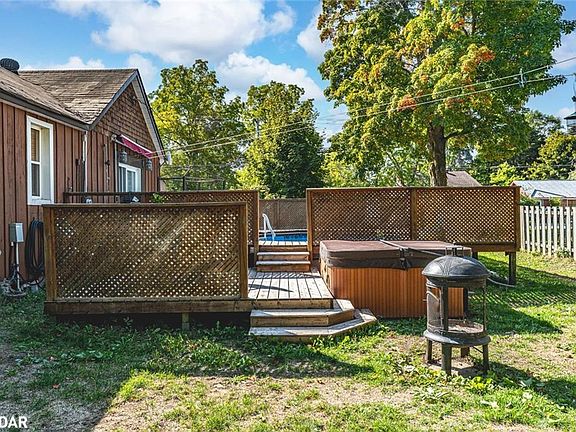 FAMILY-FRIENDLY LOCATION WITH WALKABLE CONVENIENCE & UNBEATABLE OUTDOOR LIVING - AN INCREDIBLE OPPORTUNITY TO CREATE YOUR DREAM HOME IN ANGUS! Welcome to this detached wood bungalow set on a spacious double lot in a family-friendly Angus neighbourhood, just steps from Angus Morrison Elementary School, and a community park. This walkable location puts downtown Angus within easy reach, where you can enjoy restaurants, shopping, groceries, the rec centre, and the local library, while nature lovers will appreciate the nearby parks, trails, and the Nottawasaga River, with Barrie’s Kempenfelt Bay only 20 minutes away for beaches, marinas, and waterfront paths. The inviting backyard sets the stage for relaxation and entertaining, complete with a hot tub and an above-ground pool surrounded by a fenced deck for privacy. Inside, the eat-in kitchen flows into a bright living room, highlighted by a large bay window that fills the space with natural light and a sliding glass walkout to the back deck. The thoughtful floor plan also offers two comfortable bedrooms, a 4-piece bathroom, and a conveniently placed laundry room for everyday comfort, with an owned on-demand water heater adding value and efficiency. With incredible potential for buyers ready to update and make it their own, this #HomeToStay is waiting to welcome you into your next chapter!