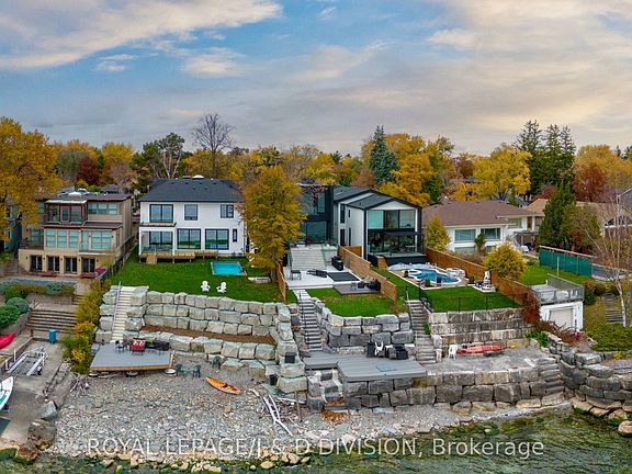 **A truly one-of-a-kind opportunity to personalize a prime Toronto waterfront home to your exact taste, set against the natural beauty of Lake Ontario** Along a serene stretch of the Etobicoke shoreline, this striking new classic Hamptons style build by Chatsworth Fine Homes presents a rare opportunity to craft a fully customized lakefront residence - without the wait of new construction. Set on a 56 x 224 ft lot with direct lake access and a private beach, the home spans 6,760 sq. ft. of luxury living space. The exterior is beautifully finished, showcasing Chatsworth's signature craftsmanship, timeless architectural detail, and a contemporary coastal design that perfectly complements the tranquility of its lakeside setting. Inside, an open-concept kitchen, dining, and family room offers expansive lake views, seamless flow, and light-filled living, opening directly onto a spacious lakefront deck, pool, and landscaped yard. Follow the lawn to a staircase that leads directly to a secluded waterfront deck and private beach, a spectacular setting for lakeside entertaining, canoeing/kayaking or quiet relaxation by the water. The interior layout is designed for comfort and flow, featuring 4 + 1 bedrooms, each with an ensuite bathroom and walk in closet, and 7 baths in total. The primary suite overlooks the lake and includes two generous walk-in closets, while features such as a custom solid mahogany front door, heated basement floors, and panoramic views of Lake Ontario enhance both function and luxury. With exterior construction and interior designs in place, this is a rare canvas for a discerning buyer to personalize every detail of finishes and fixtures. It's an exceptional opportunity to realize a dream lakefront home, guided by Chatsworth's commitment to sustainability and innovation. This property embodies thoughtful design at every stage, offering both immediate curb appeal and endless potential within.