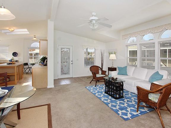 This beautiful home boasts a large yard and 3 full bedrooms, a spacious kitchen, dining and living room, tall ceilings and a bright sunny location. Enjoy a large master suite graced with an en-suite bathroom including a soaking tub. An extra large walk in closet and direct access to your own private patio and garden space round out this elegant bedroom. Two more full bedrooms are located nearby, they are filled with light coming through the tall windows and offer a wonderful opportunity for guests, a game room, you name it. Just off of the kitchen, a full sized laundry room is available, equipped with a washer and dryer. You'll love the location of this home, away from the noise with a private garden ready for your creativity, it is an oasis. If you have been looking for the perfect place to call home in a premier 55+ community, this might be the one.