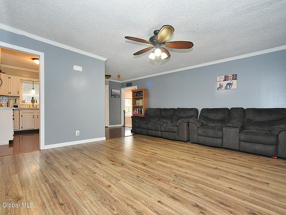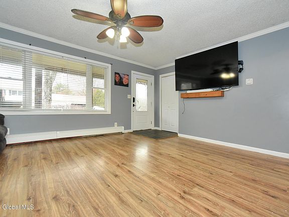 Enjoy single-level living in this charming ranch on a quiet cul-de-sac. Filled with natural light, the home features an updated kitchen with white cabinetry and stainless steel appliances. The spacious primary suite boasts dual sinks, a ceramic tile shower, walk-in closet, and French doors opening to a generous backyard—perfect for summer entertaining. Plenty of space for all your outdoor gear, including a storage shed. Recent updates include electrical panel, electric baseboards in the primary bedroom, hot water heater, and French drains. Conveniently located minutes from local schools, Saratoga Springs, and South Glens Falls.