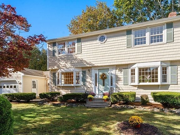 Welcome home to this meticulously maintained, move-in ready residence, perfectly positioned on a tranquil cul de sac in a highly sought after neighborhood. Designed for comfortable living & affording a variety of options for effortless entertaining, this delightful house offers an excellent flow & is flooded with natural light & lovely views of the large, level, manicured yard with its mature trees, garden areas & convenient shed, abutting a hayfield. Recent updates include newly refinished gleaming hardwood floors, plush new wall to wall carpeting & fresh paint throughout. Elegant crown molding adds a touch of sophistication to the spacious main rooms. Key features & amenities: eat-in kitchen, energy efficient paned windows, 2 year old upgraded electrical panel; abundant storage throughout; an oversized, attached, side entry, 1 car garage; a wonderfully green, peaceful location, combining easy access to major routes 93 & 495, shopping & recreation to provide gracious living.