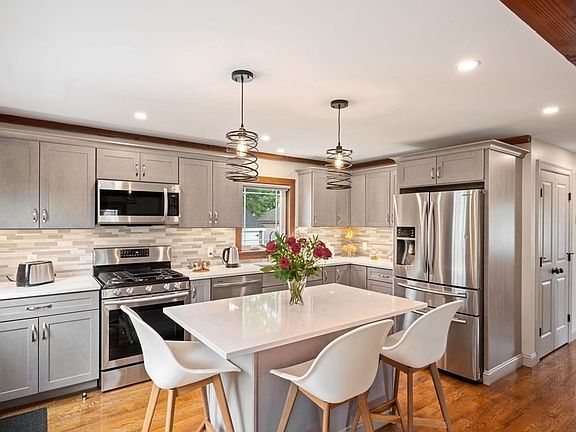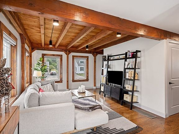 This lovely 4 bed & 2 full/ 2half bath home, completely renovated in 2020, has been thoughtfully designed for modern living and has it all! Upon entering the home, you immediately fall in love with the character and warmth of the dramatically exposed wood beams ceiling. An open concept kitchen offers stainless steel appliances, quartz countertops, plenty of prep area and an island that is perfect for entertaining. The family room opens to a spacious dining area overlooking the private deck and manicured fenced yard. A powder room completes this inviting floor. On the 2nd floor you will find a bright main suite, generous walk-in closet and spa-like bath with radiant heat. 2 additional bedrooms and another beautifully appointed full bath complete this level. The finished basement offers a front to back family room, a generous bedroom and newly added half bath. Additional amenities include HVAC, gas FP, W&D, HW floors, a spacious deck & private yard with a shed and irrigation system.