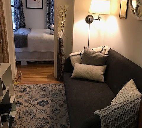 Available for late March or April 1 occupancy is this nicely renovated one bedroom featuring exposed brick wall, decorative fireplace, hardwood floors, high ceilings, West and South exposure with great light and nice views of the back of the townhouses on Minetta Lane, renovated kitchen with stainless steel appliances, two closets, and granite bathroom. The apartment is situated three flights up facing the back, and in the heart of Greenwich Village - steps to trains, restaurants, cafes, and nightlife. Pet-friendly. Guarantors accepted. Please email to schedule a viewing.