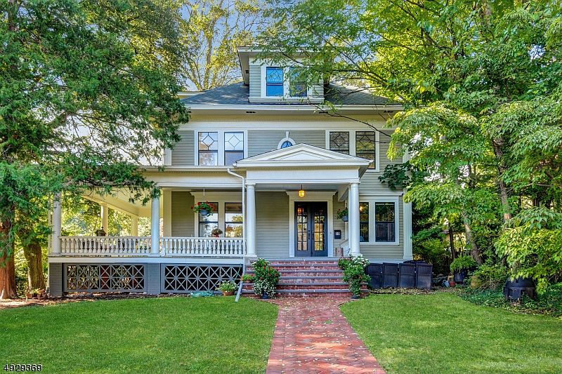 Set amidst fine homes, a block to Village & train, this grand home, w/ its commanding wraparound porch & garden oasis, offers incredible living space in & out blending period details & modern updates. Stained glass windows, period tile & beamed ceilings usher you into this stunning home with ribbon hardwood floors & fine architectural details. Huge light-filled Kitchen with block-topped center island, stainless appliances, ample cabinetry, breakfast area & mudroom access to the yard. Flowing living spaces with high ceilings plus sunny Den & wraparound porch complete the 1st floor. Spacious bedrooms, 2 full baths & versatile leisure space arranged across the upper levels. Professionally landscaped yard, with mature perennial gardens & majestic trees, offers a private retreat to enjoy both "town & country".