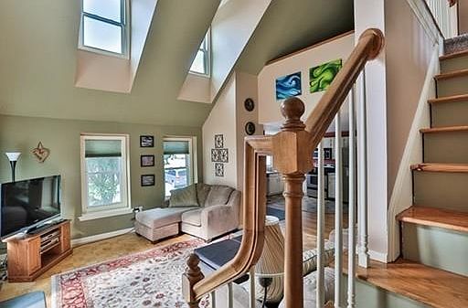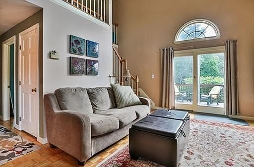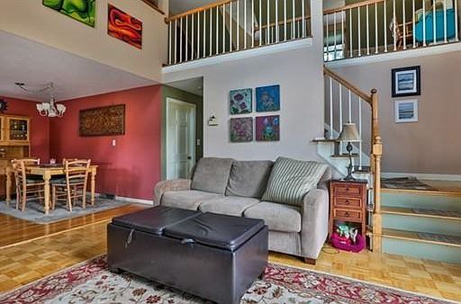 Dramatic Contemporary Design with LOFT ~ End Unit, Private Location plus Garage! Open Concept & Soaring Cathedral Ceilings ~ Tasteful Decor & Inviting Space! Updated Stainless Kitchen & Updated Bath w/ Double Vanity. New: Energy Efficient windows (most), Vinyl siding, Garage door, Slider & Water Heater + New Roofs with 50 year shingles on the way 2017! Loft is Versatile Master Suite w/ walk in closet & 3/4 bath! Dormers in Loft found ONLY in this unit ! Three finished levels yet still Perfect for One Level Living ~ with 2 first floor bedrms. All APPLIANCES Stay! Premium End Unit location is Private w/ Over-size Deck plus Lots of parking! Bonus: Central Air, Natural Gas Heat, Wood Floors, Six Panel Wood Doors, Custom Blinds. Pet friendly complex & close to Merrimack River Walking Trails, Golf Course & Major Highways. Club House avail for $80 rental. FHA Approved & Mass Housing ~ a great loan option for many buyers!