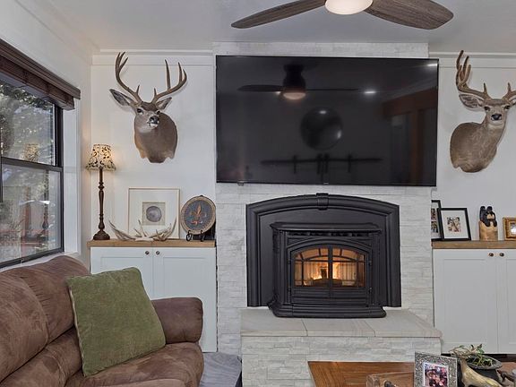 Charming Remodeled Cabin in the Pines on a rare 2/3 acre lot with Mammoth Mountain Views! Nestled among towering pines on a spacious +/- 30,491 sq. ft. lot, this adorable 3-bedroom, 1.5-bathroom cabin offers the perfect mountain retreat. Fully remodeled, this cozy getaway blends modern comfort with rustic charm. The inviting living area features a warm pellet stove, perfect for chilly evenings, while built-in cabinetry throughout adds character and functionality. Gorgeous, fully updated kitchen has butcher block countertops and custom cabinets, making it both beautiful and practical. Recently added wide plank flooring and led lighting throughout. Large deck had plenty of space to accommodate a hot tub, BBQ, and outdoor dining. Outside, soak in the fresh mountain air and beautiful views of Mammoth Mountain, all from the privacy of your expansive lot. Whether you’re looking for a weekend escape or full-time home, this charming cabin is ready for you! *Photos were taken while the home was furnished. The home is now unfurnished.