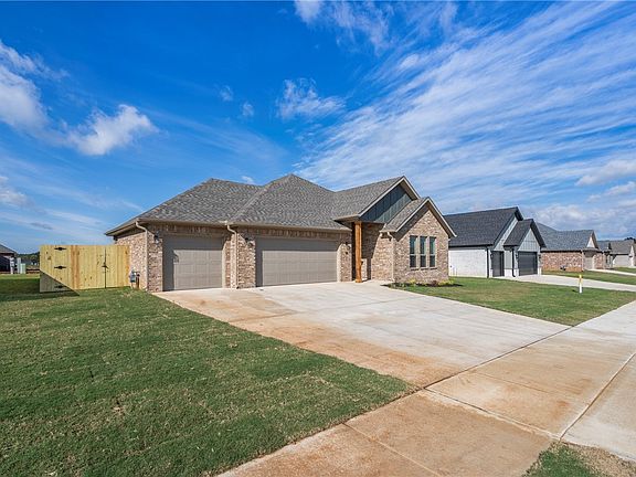 This stunning new construction home offers the perfect blend of style and functionality with two spacious living areas and designer finishes throughout. The main living room features a vaulted ceiling with a wood beam accent, large windows, and a striking fireplace with a stone surround and wood mantle. The second living area provides flexible space or a cozy retreat. The kitchen is beautifully designed with warm wood cabinetry, soft-close doors and drawers, quartz countertops, a gas range, and a statement black chandelier over the island. The primary suite offers a luxurious bath with a freestanding tub, fully tiled shower, dual sinks, and ample storage. Wood-look tile flows throughout the main areas, and extras include a mud bench, 3-car garage, solar decking in the attic, full sod, fence, and gutters.