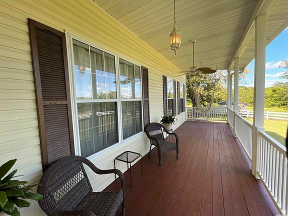 Nice house, 3 bed 3 full bath, 2 living rooms, wood burning fireplace that can be converted back to gas, new roof at end of 2020 with 40 year transferable warranty, 2020 new heat pump & compressor with 10 yr parts warranty, full house water softener, barn, about 5 +/- acres fenced for animals, storage shed with lean to, well with well shed that has a new roof, new light fixtures throughout, new paint, freshly stained porches, landscaping, NEXT FIBER INTERNET, see additional information in documents!
