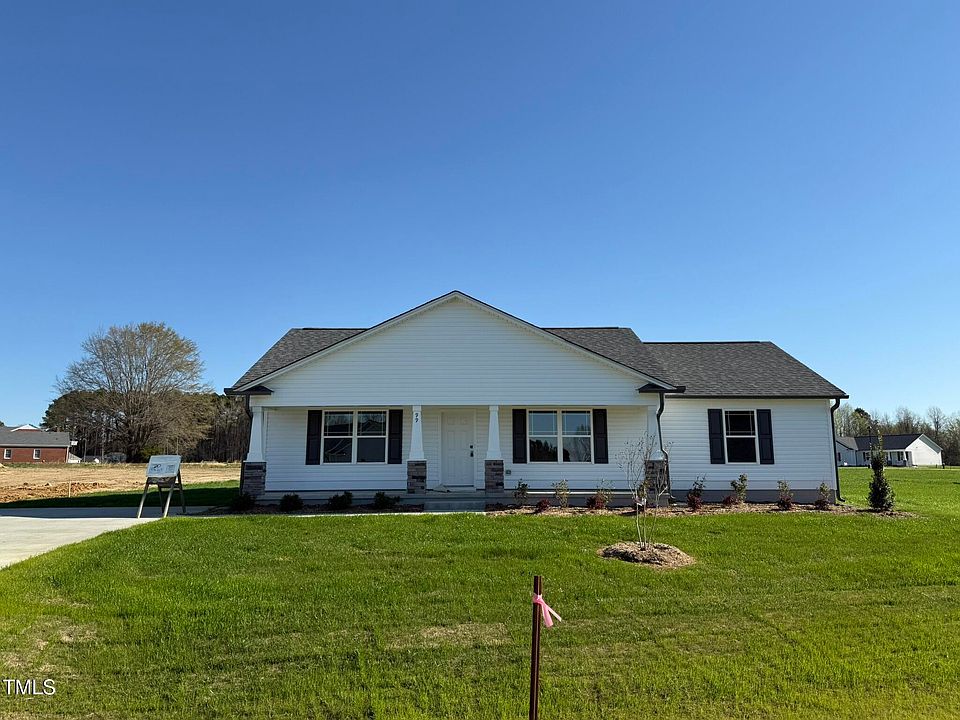 Lovely ranch plan with rocking chair front porch! Cozy family room is open to the eat in kitchen that offers SS appliances, granite, tile backsplash and FRIDGE! Split bedrooms. Owner's suite with a walk-in closet and dual vanity. Two additional bedrooms share a full bathroom. Patio in back is great for entertaining guests. See agent remarks!