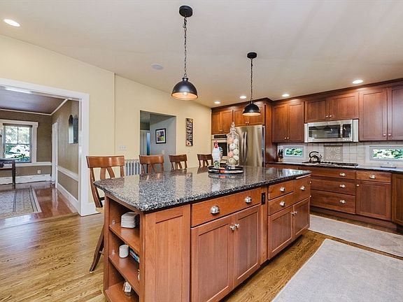 Tucked into the end of a quiet side street, this timeless and beautifully maintained 1885 Colonial in downtown Mansfield blends period detail with the modern convenience of a gourmet chefs kitchen, added in 2003. Stainless steel appliances and granite countertops with a large island transition to a dining area and family room with a cozy gas fireplace, making entertaining a breeze. From there, access a large screened porch, perfect for relaxing in the evenings. Fabulous mud/laundry room on 1st floor with plenty of storage. Dining room, living room, office, foyer and half bath complete the first floor, while upstairs you will find 5 generous bedrooms, more storage, and two full bathrooms. The back yard is the perfect place to relax, with a composite deck off the porch, leading to an above ground pool. Close to rt. 95 and 495, and the walking/bike trail. Short walk to several local restaurants in downtown area as well as the train station.