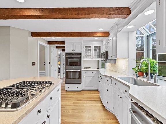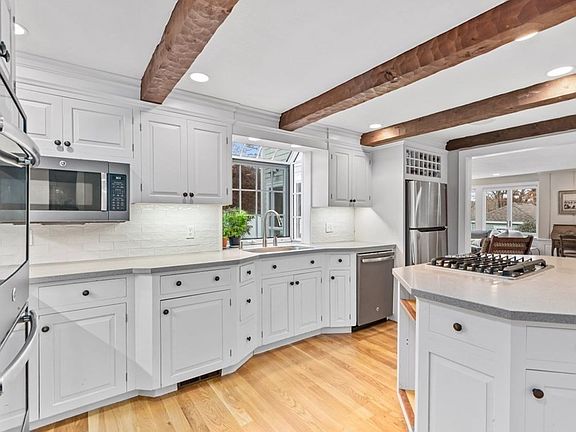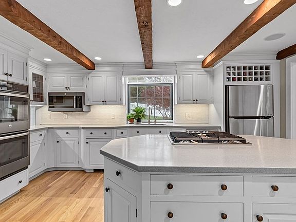 - Features: Beamed Ceilings, Closet/Cabinets - Custom Built, Flooring - Hardwood, Window(s) - Bay/Bow/Box, Dining Area, Countertops - Stone/Granite/Solid, Kitchen Island, Breakfast Bar / Nook, Recessed Lighting, Remodeled, Stainless Steel Appliances