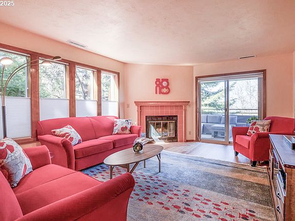 Located in the highly sought-after South Hills of Eugene. This beautifully maintained single-level condo offers sweeping views of the valley and a perfect balance of comfort, convenience and style. Privately positioned at the west end of the building with no adjacent neighbor it offers added peace, quiet and a unique sense of seclusion rarely found in condo living. From the moment you arrive, you’ll appreciate the ease of access—park under your private carport and enjoy a short, level walk directly to your front door with no stairs to navigate.Inside, the home is filled with natural light from skylights and large windows, creating a warm, open atmosphere. The living room features a cozy fireplace and flows seamlessly onto a private balcony where you can take in breathtaking panoramic views of the city and surrounding hills. The kitchen comes fully equipped with appliances, and a washer and dryer are included for added convenience. One of the home’s standout features is the spacious 21x13 ft. storage unit located below the unit—ideal for storing gear, seasonal items, or anything you want to keep out of sight but close at hand. This condo is located in the desirable Rockridge community within the 4J School District and is close to excellent schools, shopping, and local amenities. Only 15–20 minutes to the University of Oregon and downtown Eugene and only 1.8 miles from the popular Spencer Butte hiking trails. You will also find a variety of beloved local coffee shops restaurants and boutique stores nearby making this a truly ideal location for anyone seeking both serenity and convenience. Don’t miss the opportunity to tour. This property is a rare gem in a fantastic setting. 2024 Upgrades-New bedroom carpet, luxury vinyl plank, new door knobs and pulls, new light fixtures, new Samsung Microwave, refrigerator, dishwasher, Beko washer/dryer and garbage disposal (all added in 2024) Lower level 21x13 ft. storage unit included.