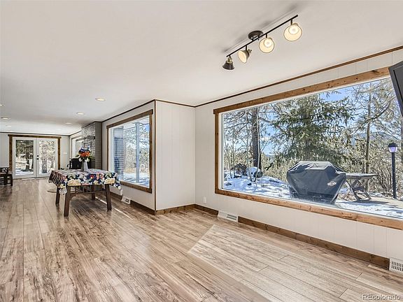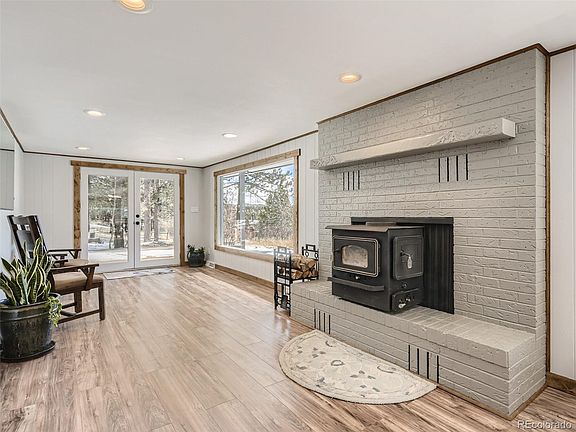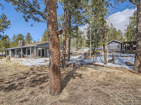 Stunningly remodeled home situated on over 2 acres of secluded, private land! The property boasts huge picturesque windows that flood the space with natural light and offer wooded and mountain views. Tons of upgrades have been made to the home including recessed and modern lighting throughout, a cozy living room with a hearth area, new quartz countertops, new stainless steel appliances including a gas cook-top and french-door fridge, ample cabinetry and additional open shelving. The exposed timbers, cathedral style ceilings and custom wood trim work create an authentic mountain ambiance and provide the perfect atmosphere for relaxation. The bathrooms have been tastefully updated with large format tile, subway tile, accent listels, new cabinets, countertops, fixtures and lighting. Store all your Colorado toys and equipment with ease - this home features an over-sized 2 car garage with a workbench area, a 3rd bay for additional storage, a large shed, and a separate out-building. When it's time to unwind, indulge in the fabulous hot tub and enjoy the sunset behind the mountains! Located just 45 minutes to Evergreen, 45 minutes to Morrison, 60 minutes to Fairplay or Denver, and a little over an hour to DIA. Absolute winner!