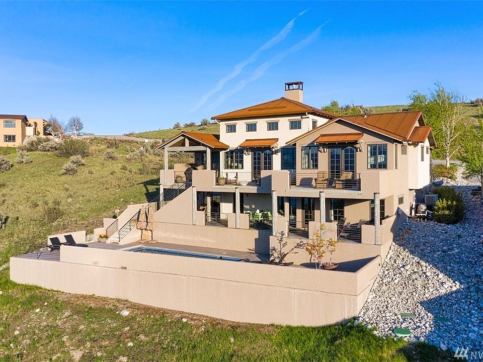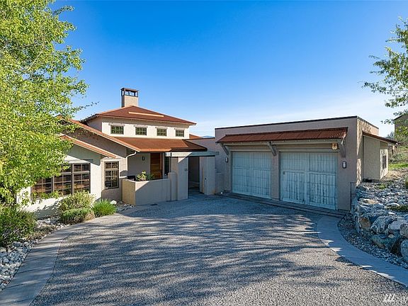 Exquisite Contemporary Tuscan home @ Bear Mountain Ranch! Soaring views of Lake Chelan, Bear Mountain Ranch GC, Orchards and Mountains. 3,800+ sq.ft. home designed with sheer class. Polished finishes: Hurd wood windows, White Oak floors, Pental Quartz counters, & 21" Clear Fir vaulted ceilings. Easy main level living, multiple guest rooms & a private guest Casita. Phenomenal outdoor living spaces and in-ground, heated/self cleaning gunite pool w/ auto cover. Luxurious living minutes from town.