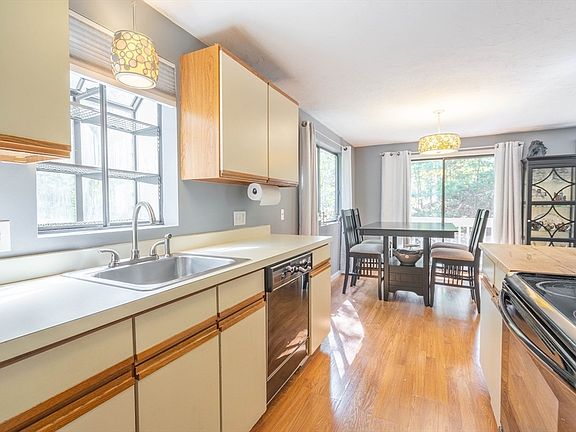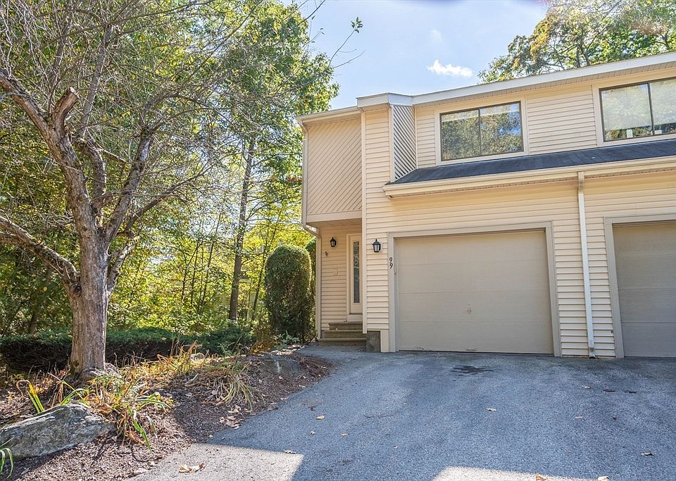 Spacious two bedroom END UNIT offering privacy and comfort. The open concept dining and living areas flow seamlessly onto a balcony through two separate sliders, perfect for indoor-outdoor living. Each bedroom features its own full bath and walk-in closet for ultimate convenience. One has a slider to a deck to enjoy the wooded back yard. The lower level boasts a finished family room with slider leading to a patio along with a half bath and laundry area. Enjoy central air conditioning and the home's close proximity to Tufts Veterinary School, shopping, dining and major routes makes it ideal for any lifestyle.
