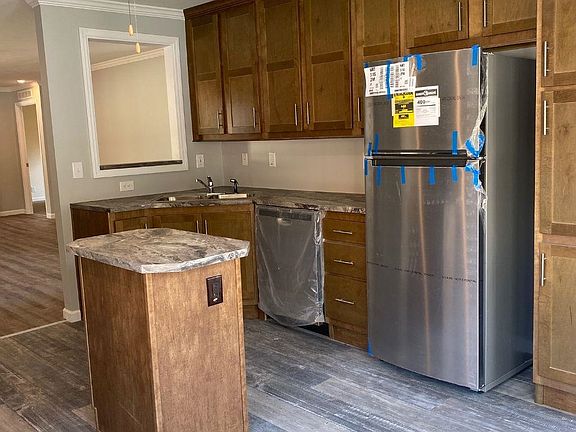 This new home features gas heat/central a/c. Stainless appliance. R30 insulation in ceiling, R19 in walls. Insulate underneath as well. Drive to be paved and possibility of adding a 10x10 shed. Sheetrock wall with crown molding. No paneling. Neutral floors in gray tones as well as pale gray walls Separate laundry by rear door with cabinets above Kitchen cabinets (top 42") Walk in closet and 3/4 bath off master bedroom full central bath microwave vented
