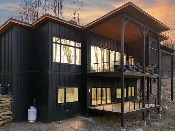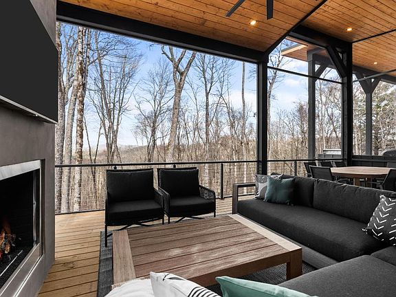 A “10” on the Wow factor scale! Open the front door and enter an expansive mountain vista with a contemporary twist. Photos pale next to the exceptional lifestyle experience provided by this carefully crafted and decorated organic modern home. Multiple window walls and functional porches create an oneness with the natural beauty of the outdoors. The open floor plan is complimented by clean architectural lines, modern appliances, and surprising touches throughout. As example, the top-of-the-line gourmet kitchen is expected in a home of this quality, but the large walk-in “Messy Kitchen” or butler’s pantry with a second LG refrigerator is a thoughtful surprise. As is the built-in stainless outdoor cooking console with gas grill and pizza oven on an open porch, plus a screened porch with fireplace and smart TV as well. As are the interactive electric mirrors in the bathrooms. As is the in-garage Tesla universal charging station and “shop” cabinets.