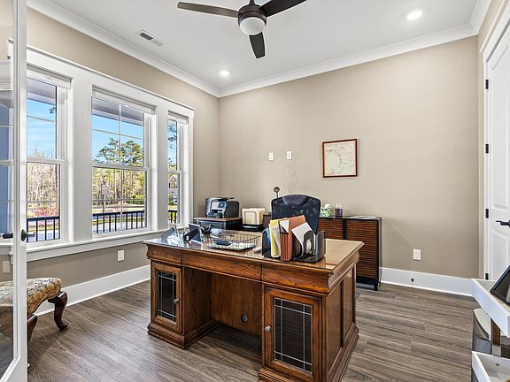 Welcome to this gorgeous brand-new home nestled within the highly coveted Collins Creek Landing gated community. Custom-built by Suriano Homes, this masterpiece invites you to embrace luxurious living. With 5 bedrooms & 5 bathrooms spread across a spacious 7,379 total sq. ft. on .46 acres, this residence offers the epitome of comfort & style. Upon entry, the grandeur of the lofty high ceilings, featuring coffered designs in the great room, sets the tone for the exquisite features within. Step into the heart of the home and discover the gorgeous gourmet kitchen, a haven for culinary enthusiasts. Equipped with a 5-burner natural gas range and a built-in double oven that doubles as a microwave, this kitchen elevates every culinary experience. Quartz counters in the kitchen and baths exude sophistication. This home boasts thoughtful conveniences, including an enormous walk-in pantry with space for a second refrigerator, a laundry room the size of a bedroom complete with custom cabinetry, vanities in every bathroom, pre-wiring for a built-in home generator, an electric car outlet in the garage, an audio system for the TV in the Great Room, speakers in the ceiling pool area for prewired TV, all bedrooms are wired for cable/firestick including the loft, & a natural gas heating system, ensuring year-round comfort. Natural gas is integrated into the home for the fireplace, on-demand tankless water heaters, jacuzzi, pool, and heating system, adding efficiency and convenience. The great room's beautiful fireplace with granite surrounding creates a comfortable and cozy space to relax and unwind. On the main floor, the sumptuous first-floor master suite beckons, featuring a lighted double tray ceiling, a lavish en suite bathroom with a vanity, and direct access to the serene expansive vaulted ceiling-covered rear porch overlooking the pool and jacuzzi. The master suite also boasts a large walk-in closet with built-in shelving and custom cabinets. Additionally, there is a guest bedroom on the main floor with a private full bathroom, offering convenience and privacy for guests. An office space, an expanded foyer, and an extra-wide hallway contribute to the functionality and grandeur of this home. The jacuzzi takes only 2 hours to heat, and there is a full bath off the pool and Jacuzzi's enclosed rear porch. The pool/jacuzzi area is wired for a TV and electric fireplace, perfect for entertainment and relaxation. Ascend to the second floor to discover an expansive balcony, a spacious loft that offers a wet bar featuring a wine cooler, sink, and cabinetry. Additionally, there are three graciously appointed guest bedrooms each with walk-in closets. Two of these bedrooms are joined by a Jack and Jill full bathroom and the third bedroom and loft have access to yet another private full bathroom. Luxury Vinyl and Porcelain tile floors throughout exude elegance, while the three-car garage and front porch embrace the essence of low country living. Custom built-ins, crown molding, and meticulously tiled baths further enhance the allure of this extraordinary property. Complete with a raised foundation, irrigation system, and an alarm system, this home represents the pinnacle of sophistication and comfort in Collins Creek Landing, a beautifully designed gated community offering residents and their guests a swimming pool, clubhouse, playground, nature boardwalk, community boat landing, day docks, and on-site boat storage. Collins Creek Landing borders Collins Creek and provides direct access by boat to the Waccamaw River and Intracoastal Waterway. Located in Georgetown County, Waccamaw School District. Close to TPC Golf Club and Murrells Inlet Marshwalk with some of the area's very best waterfront dining and entertainment. Only a mile to Wacca Wachee Marina. Near the beaches of Huntington Beach State Park and Brookgreen Gardens. This is one you will want to see!! Call us today to schedule a time to tour this truly unique home and community.