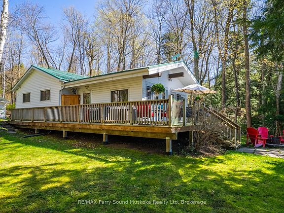 Motivated Seller. Bring an offer.!The cottage country dream package! Three bedroom, one bathroom bungalow cottage on Sugar Lake, Seguin Township. Open concept, vaulted ceilings, plenty of windows bringing in natural light. Propane forced air heat and air conditioning. Washer and dryer. Get cozy by the wood stove in the winter. Walk out to deck and into a serene setting. Single car garage. Both Cottage and garage with metal roof. Shed. Level land and a gentle access to the waterfront, friends and family of all ages and pets with stone pathway. Perennial gardens throughout the property. Gentle walk into the water with sand entry. Spectacular long view with Southern exposure to enjoy the sun all day. Mature trees on the property for some shaded areas during those sunny days. Relax in a hammock. Sugar Lake is known for good fishing and right off the dock! Enjoy a little tubing and skiing, paddle boarding, kayak, and canoe. Listen to the loons and birds in the evenings and mornings as you sit on your dock in this peaceful location. Just a few minutes from a small village of Orrville for amenities and weekly summer market. Just a 15 minute drive to the town of Parry Sound for shopping, hospital, theatre of the arts, schools and so much more. This property is located on a year round municipal maintained road. Adding a little Sugar to your search will help your Cottage country dream come true. Seller is a registrant.