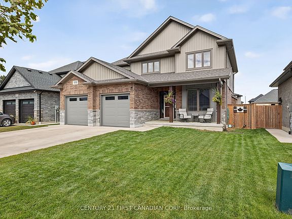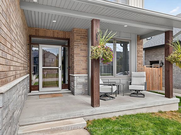 BETTER THAN NEW! THIS IS ONE THAT YOU HAVE BEEN WAITING FOR!! Immaculate 2 storey with great curb appeal situated on a private, premium lot in the heart of Thamesford. This 4+1 bedroom, 3.5 bathroom family home provides 2,996 sq. ft. of overflowing luxury living space. Step inside to glamorous modern farmhouse living you can feel as you enter each room. Boasting high quality executive finishes, the main level offers a layout with tremendous ease of flow. Bright, sun soaked living room features cozy electric linear fireplace finished in stone surrounded by shiplap and recessed lighting throughout. Beautifully appointed shaker style kitchen finished with Quartz countertops, valance lighting, sideboard with live edge countertop, island with breakfast bar and stainless steel appliances. Spacious main floor office with stunning feature wall. Luxury master retreat with spacious walk-in closet and lavish spa-like ensuite with soaker tub and custom glass shower. Upper level boasts oversized bedrooms complimented by generous closets, making this the perfect family home. Convenient second floor laundry room with built-in cabinetry. Fully finished lower level features expansive family room, additional bedroom, sitting area and 3 piece bathroom. Enjoy your backyard oasis complete with HEATED ABOVE GROUND SWIMMING POOL surrounded by sundeck and private concrete patio, perfect for entertaining or family gatherings. Relax on the adorable front porch, perfect for enjoying that morning cup of coffee or evening glass of wine. Located close to all amenities including shopping, restaurants, great schools, playgrounds, major highways and Cobble Hills Golf Club. Just a short 10 minute drive to London and 12 minutes to Woodstock, come experience what this tight knit community has to offer. This is your opportunity to stop thinking about small town living and finally call this tranquil setting home!