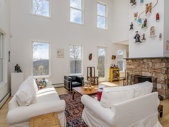 Kent Hollow Views - Custom designed modern Colonial enjoying fantastic westerly mountain views. Built in 2002, the home is situated on 8+ private acres and is accessed by a long winding driveway. The home is the creation of artist/owners Claudia DeMonte and Ed McGowin and masterfully integrates abundant natural light throughout. The first floor features an impressive two-story living room anchored by a fireplace, a formal dining room with access to a wonderful screen porch, a spacious eat-in kitchen with built-ins and pantry, and a first floor bedroom (currently set up as a den). Upstairs an open loft area, used as a home office, leads one to the master bedroom suite. The property includes a large detached studio building which could easily be converted into a garage. Close to Lake Waramaug and the village of New Preston, a perfect country retreat.
