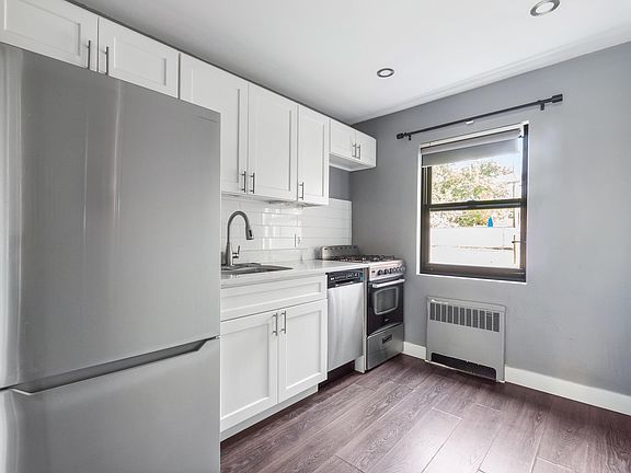 Discover this beautifully renovated, one-bedroom apartment in the heart of Downtown Bayonne. The unit boasts a kitchen equipped with stainless steel appliances and granite countertops, complemented by hardwood floors that extend throughout the apartment. You'll love the abundant natural light this corner unit receives. Recent upgrades include a new closet installation, providing excellent functional storage. The apartment also comes with the convenience of an in-unit washer and dryer and a dedicated parking spot in the rear lot. Situated just one block from 1st Street Park, this location offers easy access to transportation. The 8th Street Light Rail Station and buses to New York City are all nearby, as is the Bergen Point Shopping Center. Given its prime location and modern amenities, this rental is a fantastic value and won't be available for long. Small and medium pets ok at owner's discretion with monthly fee.