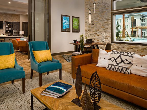 - Exterior features: 24-hour Yoga and Spin Studio, Availability 24 Hours, Barbecue, Bocce Court, Business Center, Courtyard, Covered parking options*, Custom 42" smooth gray kitchen cabinetry, Direct access attached garages in select units, Extended size garages and reserved parking for large vehicles available, Exterior Type: Conventional, Flooring: Wood, Granite Countertops, On-Site Management, Package Receiving, Pet Park, PetCare, Private attached and separate garages*, Private poolside cabanas, Private yards on select units, Putting green, Rent Payment Options offered by Flex, Single basin kitchen sink with goose-neck faucet and sprayer, Sleek white subway tile back-splash