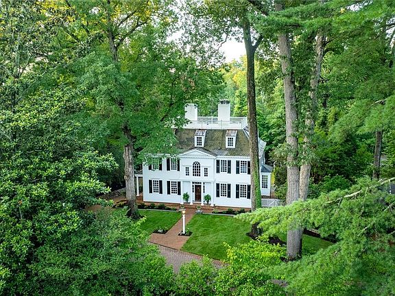 Extraordinary opportunity to live in a replica of Sheldon’s Tavern of Litchfield, Connecticut circa 1760. This New England Colonial is located in the heart of Colonial Williamsburg in the desirable Walnut Hills neighborhood. Built in 1983 by Jim Griffith, this home offers 4,910 finished sq. ft plus an additional 2,471 sq. ft. on the unfinished lower level that includes a 3-car garage, workshop and storage space, all situated on a private .939-acre lot. Enter through the gates & drive up the brick driveway, featuring updated lighting, expanded parking & a renovated front patio. It offers 5 bedrooms, 3.5 baths and a sunroom. Reclaimed heart pine floors, wood moldings & wainscoting and a beautiful staircase welcome you. This home features four fireplaces, an eat-in kitchen, a mudroom, a rooftop widow's walk, a back deck, a fully fenced yard with a gate and a second-floor balcony. The kitchen features 2 sinks, an induction cooktop (with gas connection also available), a wall oven, a center island and an abundance of natural light. The primary bedroom features double walk-in closets, an en-suite marble bathroom, & access to the 2nd floor balcony. This home truly is a local treasure.