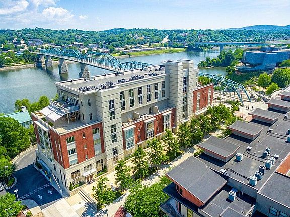 Large private terrace with spectacular views of city and mountains - CHECK. Premium downtown address - CHECK. Quality construction - CHECK. Floor to ceiling glass - CHECK. Incredible urban living at your footsteps located next to the fabulous Walnut Street Pedestrian Bridge and Tennessee River Walk for miles and miles of fun. This condo is located on the front of Museum Bluffs building, on multi levels with a front door to this unit on the parkway, each level with unique City view. Meet your friends for cocktails next door at one of the best rooftop bars in town @ The Edwin. Just a short walk across the Holmberg Bridge to Bluff View Art District for coffee @ Rembrandts or pasta @ Tony's. But, seriously, the large private terrace is your ''outdoor living room'' overlooking the city and it's special. Come take a look!!!