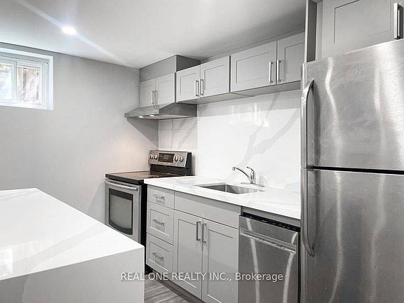 Stylishly Renovated 2-Bed 1-Bath Legal Basement unit With Private Separate Entrance & In-Suite Laundry In Central Mountain. Includes 3 Parking Spots. Around 1,000 Sq Ft. Sleek Eat-In Kitchen Featuring Quartz Counters, Matching Backsplash, Stainless Steel Appliances(Stove, Fridge & Dishwasher). Stunning Waterfall Island W/ Breakfast Bar. Modern 3-Piece Bath With Spacious Glass Shower. 2 Generous Bedrooms With Closets & Natural Light. Bright With Windows In Every Room. Bonus Large Storage Room. Tenant Covers 50% Utilities. Backyard and Front Yard Are Shared With Upstairs Tenant. Located In Quiet, Desirable Central Mountain Area Near All Amenities. Walk To Norwood Park School, Walmart Plaza, Mohawk College & Transit. Includes 3 Tandem Driveway Spots Plus Ample Street Parking. Seeking AAA Tenant. No Smoking, No Pets.