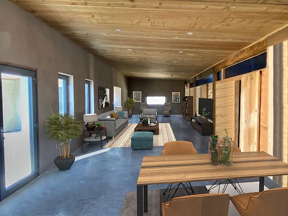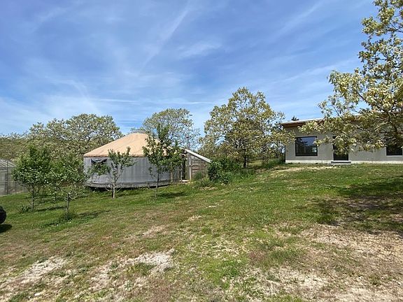 Expensive utilities? Not a problem in this awesome and unique modern home abutting almost 30 acres of protected conservation land and fields. This contemporary design is graciously powered by the sun with propane backup providing independence from the grid. Annual costs are shockingly low for a home that totals close to 4000 square feet. This home was constructed using ICF insulated block walls, built to withstand both high hurricane winds and the rising costs of fuel and electricity. Super insulated with radiant forced hot water heat through the slab this home has a cozy and constant heat. The European triple glazed windows are among the most energy efficient windows made and the house was designed with overhanging eaves to minimize heat absorption during the hot summer months. The design and finishes in this home are very low in toxicity compared to more standard construction styles. The open floor plan and spacious living concept is perfect for entertaining and allows large families plenty of room to spread out. With fantastic views of Coffin's field, it is a perfect place to have horses, fly kites, practice archery, golf or bike. In addition, you will find a heated yurt which could provide overflow for your guests and a greenhouse to start and grow a lot of your own food. Just down the road is the access to Long Point, an easy bicycle ride or adventure out the back door. Part of the property is in West Tisbury but the house is in Edgartown. Landscape is ready for your design and inspiration. The 1st 2 interior photos are virtually staged. 5 bedroom septic installed.