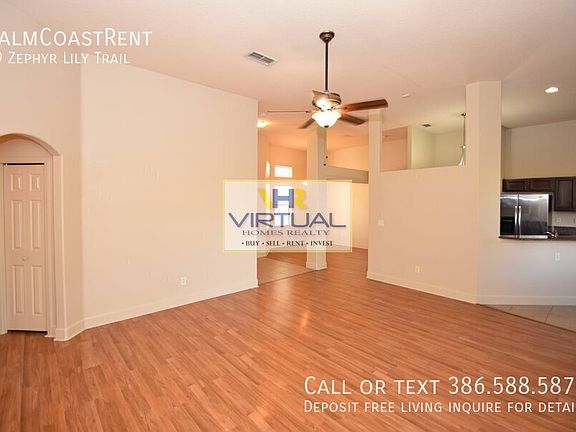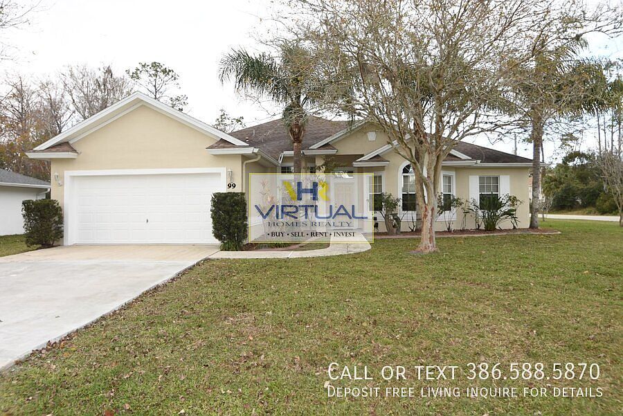 Nestled in the serene neighborhood of Palm Coast, FL, 99 Zephyr Lily Trail offers a delightful sanctuary with its inviting 1,959 square feet of living space. This charming home features three spacious bedrooms, ensuring ample room for relaxation and rest. With two full bathrooms, mornings are a breeze, offering comfort and convenience for everyone. The open floor plan seamlessly connects living areas, creating a harmonious flow that is perfect for both entertaining and everyday living. Large windows flood the home with natural light, enhancing the warm and welcoming atmosphere throughout. The modern kitchen awaits your culinary adventures, poised to host everything from intimate dinners to lively gatherings. Step outside to enjoy the tranquility of the surrounding area, with lush greenery providing a serene backdrop to your outdoor activities. Located in a vibrant community, this property offers the perfect blend of privacy and accessibility to local amenities. Discover the charm and comfort of 99 Zephyr Lily Trail, where every moment feels like a breath of fresh air. Whether you're seeking a peaceful retreat or a lively hub for family and friends, this home is ready to welcome you with open arms. Learn more about the benefits of deposit-free living here: pdfBedroom 2 Bedroom 3 Breakfast Nook Covered Patio Kitchen Screened Lanai
