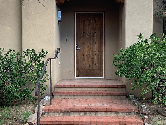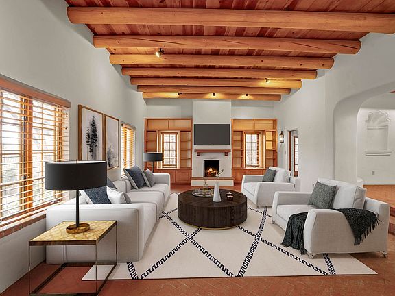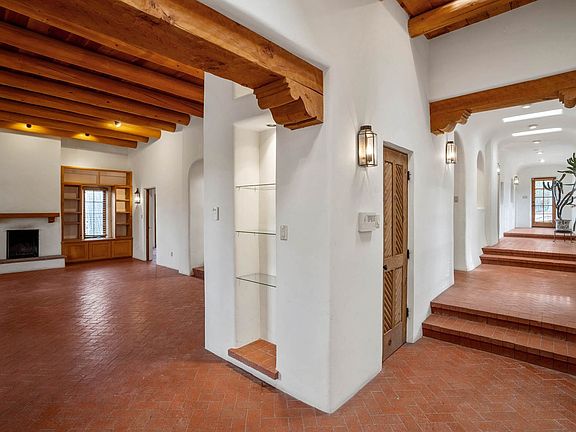 This truly elegant Eastside double adobe home is a gorgeous example of Santa Fe architecture. Three bedrooms, two full baths and one 1/2 bath. Nestled into the heart of the Eastside, the thick adobe walls, soft curves and arches, beamed and coved ceilings, hand hewn nichos, 5 fireplaces, brick floors and tons of wall space for art brings a gracious and traditional Santa Fe world to you. The Master bedroom is private and has a large walk-in closet as well as fireplaces in the Bedroom and the Bath. Open floor plan, Great separation of spaces, New appliances. Covered Portal, enclosed backyard, fully landscaped. Several exterior steps up to front door entry, two interior steps up to kitchen level from living room, and a series of separated interior steps along the hallway (see pics). Close to Canyon Road with its lively selection of art and cuisine. Close also to St. John's and SF Prep. Off Street parking. No Garage. Unfurnished. Rent is one year minimum, $5,000/month, first, last, full security deposit due at time of signing. No utilities included. Non-refundable per Pet fee depends on size and type of pet(s). Background checks.