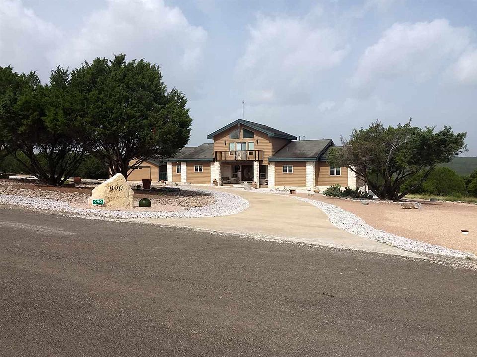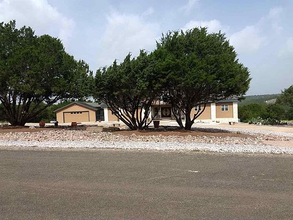 AMAZING VISTAS from an amazing home! Originally a Lindal cedar home, the exterior was converted to Hardi-plant with stone accents. The interior still has the lovely beams and other touches from the original design. The front of the property is xeriscaped with no fuss trees, rock gardens and big circle drive, plus the acreage has rugged tree coverage, no need to keep up a huge lawn! The home is even equipped with a lightning rod, perfect for being on the high side of a ridge! Fun facts about the kitchen is that there is a conventional oven, a convection over AND a warming drawer. With huge windows facing south, how do you avoid any rain entering the house? You install hurricane shutters - also perfect for security! The large detached garage joins the house by a breezeway covered by the Epoch material as is the wonderful porch. Whitewater Springs is a wonderfully scenic development with hills and valleys, forever views, excellent restrictions and not at all far from Marble Falls or north Austin. There is a community lake for fishing and boating (some limitations), Cow Creek runs through parts of the neighborhood. Gated entry, mail boxes just inside the gates, a subdivision water company, just a really nice place to live! COME SEE US!