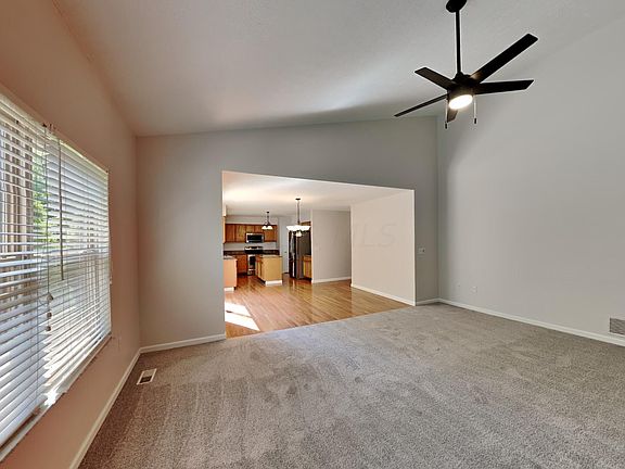 This spacious 4-bedroom, 2.5-bath home features an inviting open layout, highlighted by vaulted ceilings and ceiling fans throughout. The kitchen is a chef's delight with a large island, stainless steel appliances, including a microwave, range, and dishwasher, and seamlessly opens to the dining and living areas, perfect for entertaining. The finished basement offers additional living space for a family room, home office, or recreation area. Upstairs, all bedrooms are conveniently located, including the primary suite with a walk-in closet, providing a private retreat. This home blends functionality with modern amenities, making it ideal for comfortable living.
