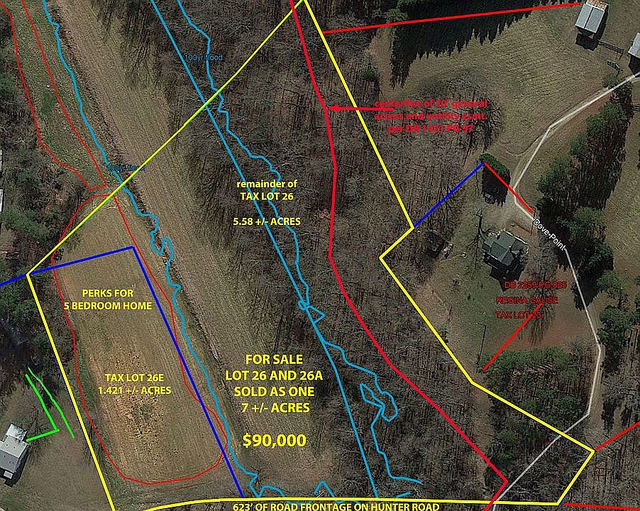 7 +/- acres with 623' +/- on Hunter Road in Lextington, NC. PERKS FOR UP TO A 5 BEDROOM HOME. Buck Branch runs through the property (600' plus of creek...).
