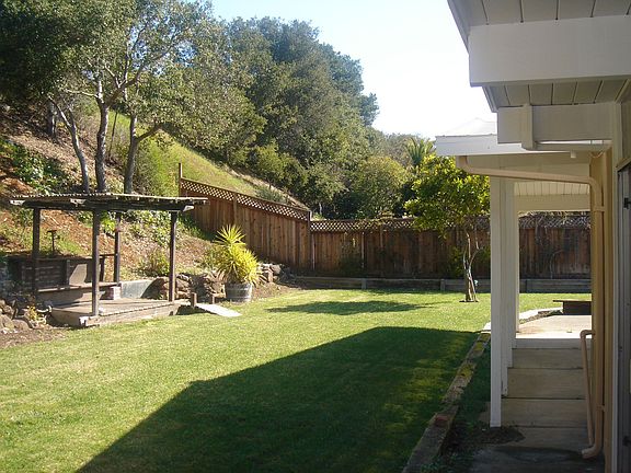 Beautiful sunny Eichler home perfect for children and pets. Large flat backyard is adjacent to open space for hiking. Fruit trees, oak trees. Space for pool/jacuzzi. Large two car garage with shelves already built in. One of the sideyards has durable metal storage cabinets for garden supplies. One full year of Termite protection is already paid for. Property taxes are current. Master bedroom has sliding glass doors that open to the backyard. Living room has sliding glass doors that open to the back yard. Large covered patio off the living room, great for quiet moments or parties! Small teahouse with rustic lattice overhang. Quiet neighborhood, great schools. Easy access to Highway 101. This is a well-loved home where 7 children were raised. It's just waiting for the perfect family to make this house their home! Please contact Rick Pettibone at 415-269-4213 to make your offer. $788,000. We are not in a hurry to sell. will consider lease to buy Neighborhood Description Very quiet neighborhood. well maintained, great neighbors!