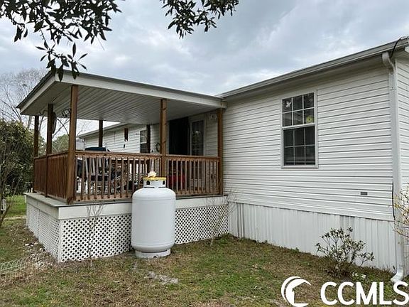 What a fantastic opportunity to own a home near all Myrtle Beach has to offer. This double wide manufactured home is located on leased land in Conway Plantation. The home features 3 bedrooms, 2 full bathrooms, a gas burning fireplace and a split floorplan. There is an inviting covered porch on the front of the home that is perfect for rocking chairs and morning coffee. Off the back of the home is another covered porch that over looks a wooded area. An added bonus to this home is the large detached garage with a built in work bench. There is a community swimming pool and a playground in the development. Call your agent today for more details and to schedule a showing!