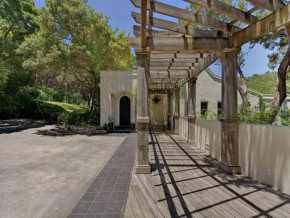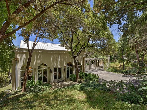 Reminiscent of an old world estate this home features incredible privacy, a stucco exterior and sprawling grounds, numerous outdoors spaces, unique architecture, gardens, flowers, a grand arbor and an entrance gate with a sweeping driveway. The home is perfectly situated 1.46 private acres with two wet weather creeks in the Old Westlake area of Austin; is on a quiet street, only minutes from downtown and was originally built in 1979 and has been updated and remodeled, most recently in 2008.Throughout the home you can see the thoughtful custom artistic touches like the custom made solid oak doors, as well as several "reclaimed" and one-of-a-kind doors. The home also features custom stained tile floors downstairs and wood floors upstairs, a wood burning fireplace, a large arbor, and a stone patio. Outside you get a true since of how private this property is. Enjoy the deep swimming pool and expansive decks which are cocooned in privacy by the creeks, hills and trees. Canyon views, an outdoor shower and a half bath complete the outdoor experience.The large master suite includes a sleeping area and a separate dressing area, plus a remodeled bathroom with custom cabinets, Lueders limestone countertops, two sinks, a soaking bathtub and a shower.The kitchen features a farmhouse sink, custom made cabinets, soapstonecountertops and unique mesquite backsplash, an AGA gas range with 6 burners, with two ovens, and a broiling tray with a commercial grade vent hood above it. Plus a walk-in pantry with room for an extra refrigerator. Bar area features a sink, soapstone countertops and a wine refrigerator.Four living areas, three bedrooms, plus a separate office/studio, gated entrance, fenced yard, two car detached garage. Trane variable speed HVAC, 500 gallon propane tank, gas heat, storage under the house, and metal roof.The property features many mature native trees including: Texas Red Oak, Juniper, Yaupon, Cottonwood, Dessert Willow, Mountain Laurel, Red Bud, Escarpment Cherry, Elm, and Live Oak. Other landscaping includes: Datura, Carolina Jasmine, Ajuga, ferns, Iron Plant, Turk's Cap, Chili Pequin, Flame Acanthus, Butterfly Iris, Iris, Beauty Berry, Senna, Paper Whites, lush St. Augustine carpet grass, Sego Palm, Texas Sage, Salvia, and dwarf roses. The arbor connecting the house and the garage features Wisteria and climbing roses.