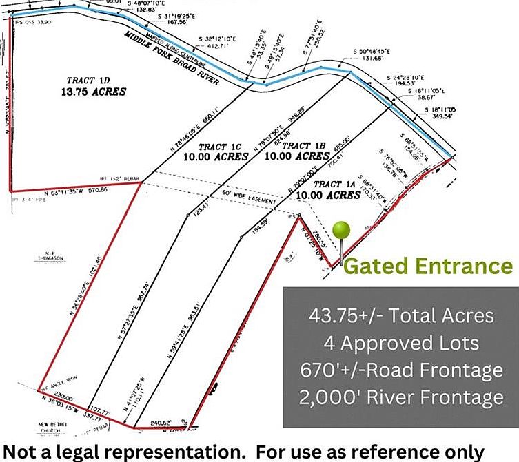 4 approved lots make up this sprawling 43 acre river front property comprised of mostly gentle pasture land with a small wooded area. It is assumed that the property has city water, buyer should verify during due diligence. Aproximately 600 ft of road frontage. Located 10 minutes from I85 & 20 Minutes to Commerce. Enter through gate located to the right of the neighbors barn and home. Neighbor and subject share same box number. Sign & more photos to follow.