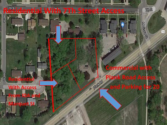 Over 2 acres on the edge and in Menasha Zoned Commercial and Residential With an office building and parking lot already in place. Built in 1982 to last forever entirely constructed of cement. Poured foundation, span create floors and cement tile roof create a low maintenance solid structure and unique soaring design. You can make this unique property anything you like. Rezone or Keep Commercial, the 2 additional lots are Zoned Residential and may be accessible by off Plank Road access to create some pretty impressive build able lots. Would be great for a Cool Home, day care, office, oetc.