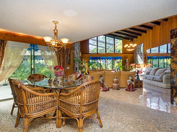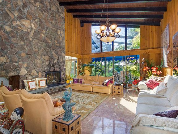Atop Quail Ranch Estates. Palms, Cycads, Bromeliads & Ferns Lead To A Covered Entry Where A Spacious Custom Single Level Home Awaits. Each Room Has Privacy & Garden Views Of Lush Landscaping. Atrium Pool, Cascading Waterfalls Into 2 Huge Ponds, A Multitude Of Large Decks, Seating Areas, Greenhouse & Walking Trails With Some Views Of The Ocean. This 3.3 Acre Property Will Not Disappoint. Enjoy The Views Along the Sweeping Driveway As You Come Upon The Enormous Covered Portico That Creates A Dramatic Entrance To The Home. You Start With a Crystal Etched Palm Frond Front Door. Beautiful Rock Floors Enhance The Entry Which Is Surrounded By Natural Woods. This Home Enjoys Two Separate Wings Housing A Large Master Suite With Custom Rock Shower On One Side & 3 Generous Tiled Bedrooms & A Loft With Open Beam Ceiling On The Other Side. The Formal Dining Room Has Views Of The Atrium Pool. The Family Room/Great Room Is Enormous With Wet Bar and Flows Into The Kitchen With Walnut Custom Cabinets, A Pantry And Plenty of Storage. The Living Room Has Huge Open Beam Vaulted Ceilings With A Floor To Ceiling Rock Fireplace Plus Large Windows Bringing The Incredible Outdoors In. Home Also Includes A Laundry Room, Maid's Quarters And An Oversized 2 Car Garage With Workshop. The Greenhouse Has Over 4200 Sq Ft And Is Permitted. Gated Community. No HOA. There Is A Road Maintenance Agreement To Maintain Streets - Streets Are Resurfaced Every Few Years.