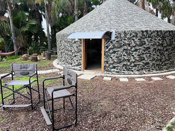 Large 500 sq foot newer yurt (just 3 years old) with 3 windows and skylight. Bathroom and kitchenette. 3 years new. Beautiful tropical setting surrounded by palm trees and vegetation. We are dog and cat friendly. No smoking or vaping inside. Private driveway. Two small storage sheds.