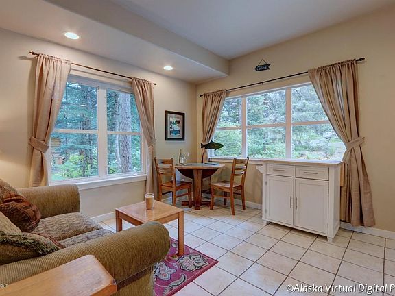 Custom two story home on a nicely appointed lot adjacent a creek and trails. In floor radiant heat on the ground floor, empire wall mount furnace on second. Downstairs kitchen, dining area/living room area, & a full bath with one small bedroom. Upstairs you will find a spacious master bedroom, walk in closet, and washer/dryer in walk in. Beautiful private location includes storage building and a large gravel pad with fire pit and suitable for storing a boat or RV. Home being sold turnkey furnished with all furniture, and outdoor gear included in sale (includes almost new snow blower).