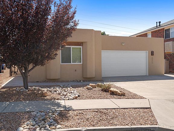 Discover your perfect oasis in the highly desirable Quintessence subdivision of Northeast Heights! This stunning one-story home offers a blend of comfort and modern living. As you enter, you'll be welcomed by an inviting open-concept layout with high ceilings that create a spacious atmosphere. The cozy living room is adorned by a charming kiva fireplace.Step outside to your private backyard, complete with a covered patio--perfect for outdoor gatherings. The low-maintenance landscaping ensures you'll spend more time enjoying your space and less time on upkeep. With a spacious 2-car garage, you'll have plenty of room for vehicles and storage. Located with nearby parks, shopping, schools and major roadways. Your daily commute is a breeze.