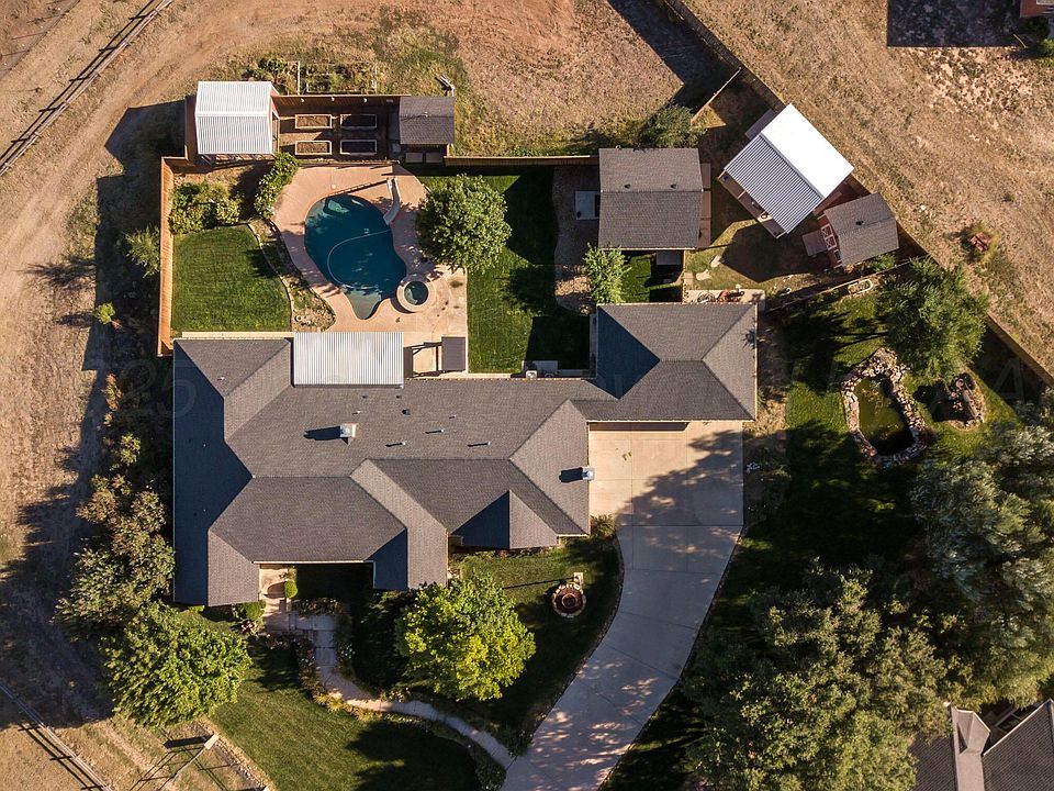 Experience country living at its finest in this stunning one-owner custom home just outside city limits. Behind a gated entry, you'll find beautifully landscaped grounds with a sparkling pool, relaxing hot tub, and two storage sheds. The spacious three-car garage, large workshop, and three-stall kennel make this property as functional as it is beautiful. Inside, thoughtful craftsmanship shines throughout in this elegant 4 bedroom, 3 bathroom home. It was built for comfort and entertaining, with two large living areas and an outdoor oasis. A private retreat offering peace, space, and timeless appeal. Room for a Shop or barn out back. A few amenities per seller: